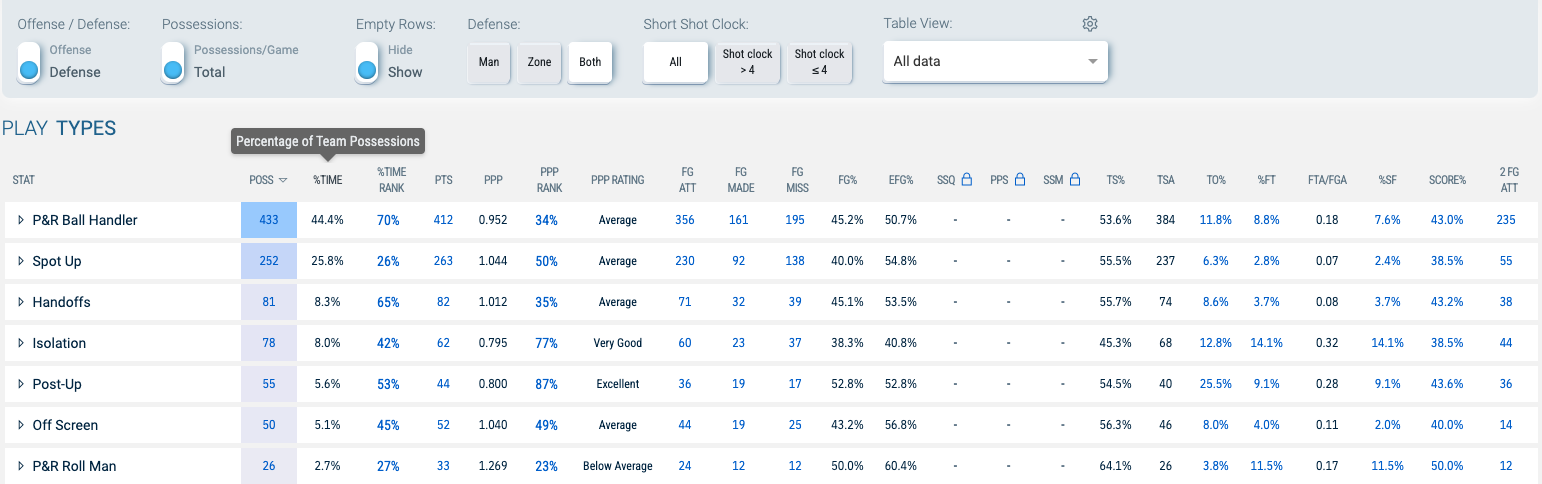 Here are Brown’s defensive numbers by play type, per Synergy.