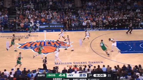 Furthermore, if the Knicks continue to put Karl-Anthony Towns in drop, or at least a step away from the action, the Celtics have to take advantage. Look at the above clip, where Towns is below the level of the screen, and notice how easy it is for Jayson Tatum to read the floor, in-out cross to reject the screen and then punish the defense as it begins to rotate.