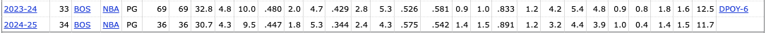 To answer your question, though, yes, he’s regressed a little, and yes, there are stats to back it up. However, when we compare those stats to last season, not much has changed. In my opinion, the Celtics are better with Holiday on the court, but maybe he needs a role change to galvanize him for the second half of the season.
